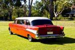 This is a 1957 Chevrolet Stretch Limo. It seats 8 people in the back, and also an extra 2 people in the front with the driver if required. Complete with period correct vinyl interior and its own in-cabin bar. As well as being fully air conditioned and its superb lighting, its sure to be a good night out in this limo.