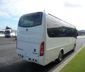 The 28 seat Yutong Auto Mini-Coach features 27 fixed charter seats in cloth with 3 point safety belts and drivers air suspension seat. WABCO ABS/ASR, disc brakes front and air park brake, security reverse camera monitor, LCD TV/DVD monitor, cruise control, 6 stack CD stereo system, P/A system with wireless microphones, alloy wheels, tinted saloon glass windows & curtains.