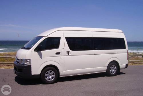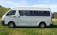 12 seat Toyota Commuter - automatic transmission, diesel motor. Dual air, PA system, TV licence plates, suggested for 10 to 12 passengers.