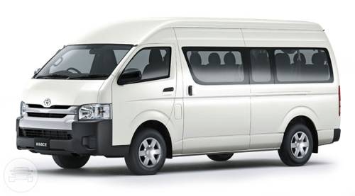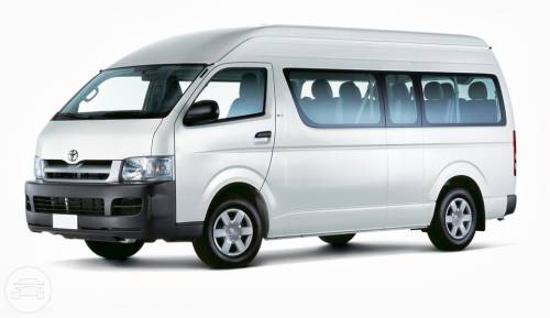 14 seat Toyota Commuter - automatic transmission, diesel motor. Dual air, PA system, TV licence plates, suggested for 12 to 14 passengers.