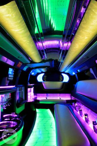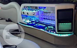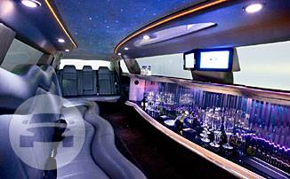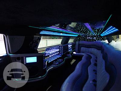 Seats: 9 or 11 (8 or 10 in rear, 1 next to chauffeur) Colours: Silver or Black Interior heat resistant Mylar padding, A/Cond, Moisture sealed automotive carpeting, Limo touch electrical system-no buttons, Colour changing face, Stainless steel champagne buckets, Rock and flute glassware standard throughout, 3 x 7 inch flat screen monitors, DVD player, Video system integrated into stereo, CD Player, Privacy Screen, Overhead interior lights.