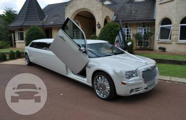 Chrysler 300C Super Stretch Presidential Edition Genuine 10 Seater Limousine Pearl White Lamborghini Doors Bentley Style Front Grill Complete Cabin Controls In Rear with Client 3 LCD SCREENS Massive Sound System Colour Changing Dance Floor / Ceiling & Bars DUB Flirt Chrome Deep Dish Spinner Rims Laser & Strobe Lights