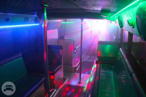 Air Conditioned DJ designed Mood lighting Fog machines Dance Pole Massive Dance Floor area Custom seats Limo style seating 8 speakers 2 subwoofers Strobes Tow Bar 21 person capacity