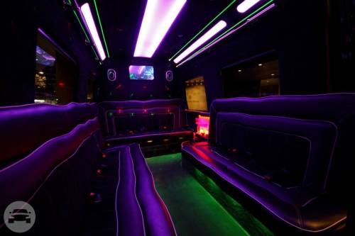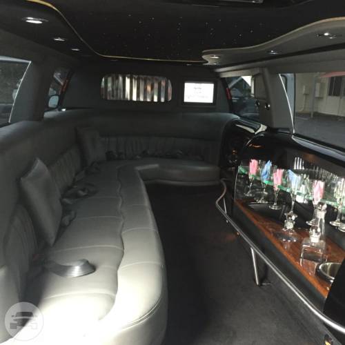 Spacious seating for 14 passengers in the rear Fibre Optic Ropes and Stars throughout the Limousine 3 LCD screens, CD/DVD player Mirrored Bar areas with Coolers and Ice Chests Glass Champagne Flutes Two Seating areas including J Shape Lounge Smoky Grey Leather Seating Privacy Screen Divider Air-conditioning Beautiful Black Exterior with Black Vinyl Roof and Coach Lights Full Length Running Board for ease of access